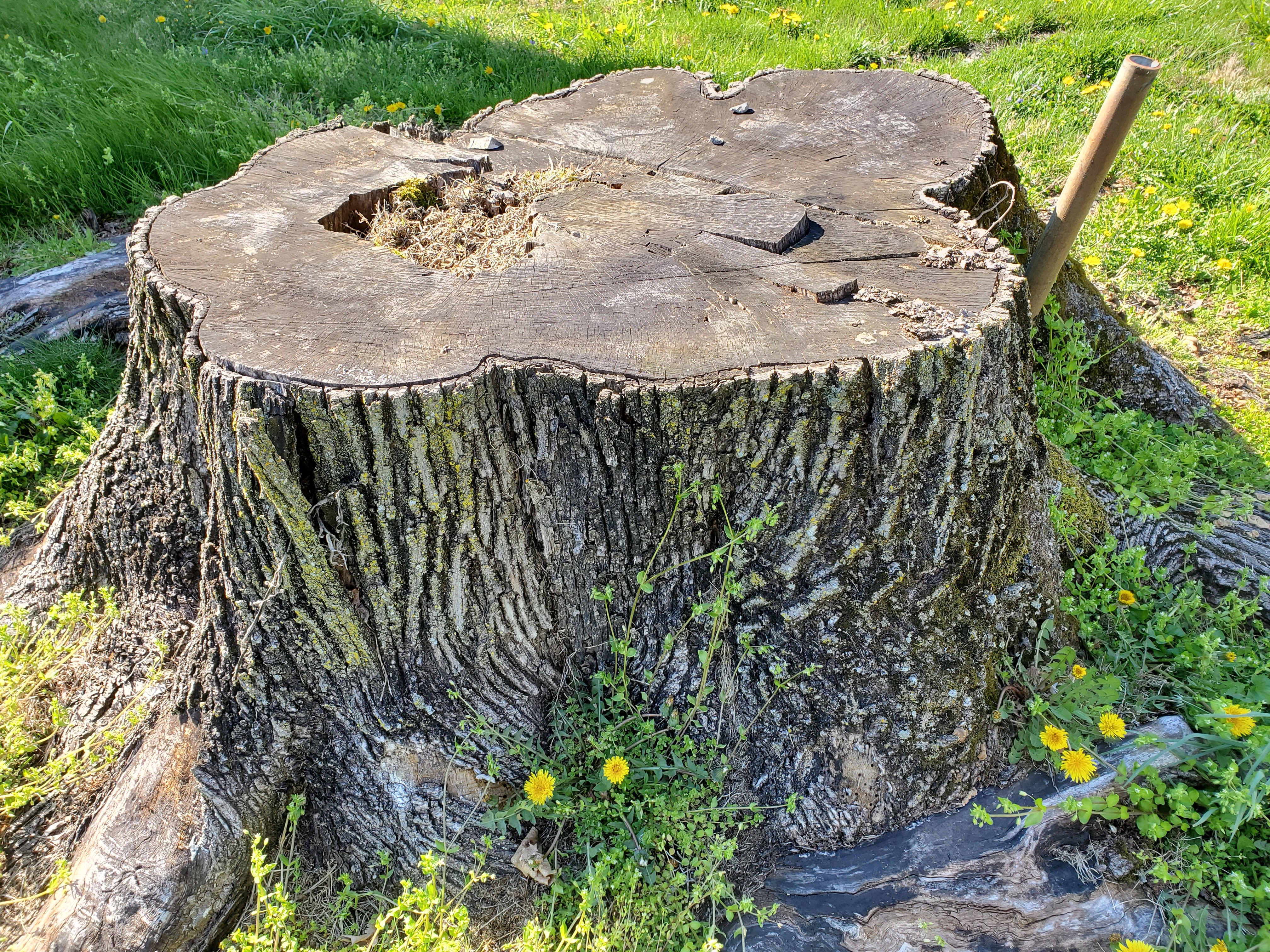 Just then, she felt a jolt and jumped off the stump.